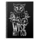 This funny animal design features an owl, roses and the quote, "Wise, Not Old."