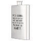 The product is a good size and came exactly as it was pictured. The lid is not attached to the flask, which could be dangerous on drunken nights... The print came out surprisingly well and looks very sharp. Would definitely recommend.
