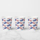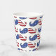 A pattern of patriotic, American flag moustaches in red, white and blue! Shown here on customizable paper party cups. This design is great for any proud American and you can adjust the size of the pattern and add your favourite colour background instead of the white shown here. Perfect for a 4th of July picnic or barbeque!
