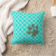 Funny Paw Print on Aqua Colour Quatrefoil Throw Pillow