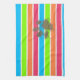 Funny Paw Print on Neon Stripes Kitchen Towel