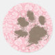 Funny Pawprint on Bubble Gum Pink Damask Classic Round Sticker