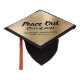 Funny grad cap topper with a faux gold metallic background that features "Peace Out" and your class year in script with your name and the name of your high school or college underneath.