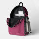 This cute backpack has the image of an adorable striped zebra peeking. The sides and top have a pink and white zebra stripe pattern, while the solid pink pocket has text in silver. You can place your name in the text field, or maybe think of something funny to say about the zebra's predicament. It's up to you!