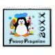 Funny Penguin Calendar. Each page has a different graphic image / cartoon art drawing of penguins with funny sayings / quips. Guaranteed to put a smile on your face and make you laugh each month of the year. A Penguin lover's calendar that will bring joy all year round. Add the year that you want to use it for. Inside the calendar it features different fun colours.