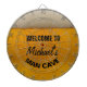 Funny alcohol themed dart boards. Welcome to the man cave! Add your name! Personalized man cave dartboard makes the perfect gift.
