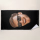 Funny personalized beach towel with a large men's photo printed on it. Upload a regular picture or use any mobile app or editing program to create the cut-out and upload a transparent png file. The background colour is editable by clicking the button to customize the design.