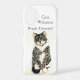 With a funny cat quote 'cats welcome, people tolerated!' and a grey tabby cat from my original pet portrait glass painting. ©Annabel Potter www.animalglassdesigns.co.uk