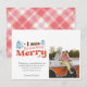 A cute and funny Christmas greeting multiple colours on the front and a orange and pink plaid plaid on back. It states, I am Freaking Merry. A humourous take on the holidays. Add your family photo and your personal message with ease.
