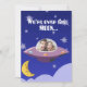 This funny space themed save the date features your own photo inside a cute spaceship flying over the moon on a night sky with galaxy type font that reads, "We're over the moon..." A fun way for the newly engaged couple to get the attention of your friends and family to announce your engagement and wedding!