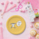 Funny Pi Guy Paper Plates with a Yellow Backdrop for Pi Day Party Celebrations. The Cute Pi Symbol is wearing a T-Shirt with Pi on it. Party Supplies and Decor for a Happy Pi Day!