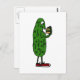 Funny Pickle Eating Hamburger Cartoon Postcard