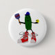 Funny Pickle Holding Pickleball and Paddle 2 Inch Round Button