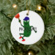 Funny Pickle Playing Pickleball Ceramic Ornament