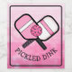 Funny wine bottle label for a gift for someone who loves pickleball. Funny pickleball pun. PIckled Dink. Cute pink girl's pickleball joke.