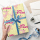 A happy pig on birthday wrapping paper. Use "Personalize this template" to tweak the "Happy Birthday!" text and create a unique, customized message. Paper featuring a gleeful pig, beneath a teetering layer cake with lashings of green icing and topped with pink candles.