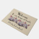 Doormat with a pen and ink colour illustration of four happy little piggies in fun colours. Little piggies or full grown hogs? It doesn't really matter because they are so darn happy and welcoming. This original illustration was created by artist Leah Wiedemer. Animals have such personalities and these are what Leah hopes to convey in her illustrations.