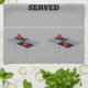 Pictured is a ping pong table with bats and ball ans a funny been served text