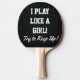 This ping pong paddle has a reversible colour design, one side is pink, and the other is black. Both sides are complete with smack talk. I play like a girl, try to keep up!