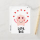 This sweet and funny pink monster has a big smile as he juggles cute red hearts. Trendy text says "LOVE BUG". Put your return address on the back of this Valentine's Day postcard for convenience. Perfect for sending Valentines for school or to family and friends.