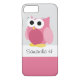 Custom iPhone 7 case with an illustrated funny yet cute pink owl and personalized with your name or text.