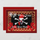 PERSONALIZE this chic elegant sophisticated traditional red & gold, with a alternative funny gothic pirate skull wearing a Santa hat bow snowflakes, and gold border with your own text.