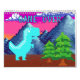 Funny Pixel Gamer Pixelated- Dinosaur Illustration Two Page Calendar Style Colourful Seasons; This funny nostalgic design features pixel art of a Dinosaur in nature. There is mountains, fir trees, and clouds in colourful sky. In front pixelated font "START" and "20XX" for beginning the new year and in back pixelated font "GAME OVER" for ending the year, I've used a pop colour palette, to give the art a 90s Video Games Aesthetic.
