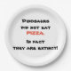 Funny plate with the phrase "Dinosaurs did not eat pizza. In fact they are extinct.