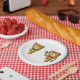 A couple of funny pizza slices with faces on them. This design looks really effective on these Paper Plates