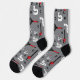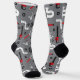 Fun plumber patterned socks printed with toilet plungers, pipes, wrenches and taps on a grey background