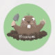 This cute funny pocket gopher is digging with a trowel. Drawn in happy cartoon style.