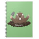 This cute funny pocket gopher is digging with a trowel. Drawn in happy cartoon style.