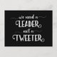 Spread the word far and wide about the Tweeter-In-Chief by sending out this funny postcard. It says "We need a leader not a tweeter" in a stylish combination of typography styles. Send to all your friends to remind them to vote November 3rd!