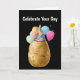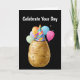 Celebrate someone's special day with this adorable and humourous potato birthday design featuring a cute spud wearing a colourful party hat surrounded by festive balloons. Perfect for friends, family, or anyone who appreciates quirky humour and pun-filled birthday wishes. This charming potato character brings smiles and laughter to any birthday celebration with its playful "couch potato" theme. generativecontent.