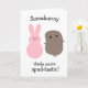A funny Easter card featuring a pink bunny and a potato on the front of this card. Inside reads an Easter message which can be easily personalized.
