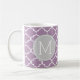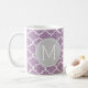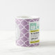 Personalized Funny Prescription "jasmine green tea" Mugs with custom monogram. Write your own prescription! Add your name, your doctor, your favourite tea and even your own instructions! Make if funny, make it yours! Mint Green. Purple quatrefoil pattern.