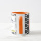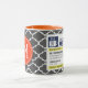 Funny Prescription Hot Tea Mugs. Write your own prescription! Add your name, your doctor, your favourite tea and even your own instructions! Make if funny, make it yours! Custom Monogram! Featuring a beautiful Dark Grey Moroccan Quatrefoil pattern. Orange circle with white monogram.