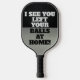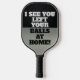 A black and silver design for the avid pickleball player with a funny double entendre pickleball. I see you left your balls at home!