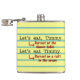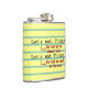 This hilarious flask for writers, editors, librarians, English teachers and grammar snobs illustrates the importance of punctuation. When you're calling Timmy to dinner, you need a comma. When you're plotting to cannibalize Timmy on a life raft, leave the comma behind. Timmy will be grateful in situation #1 - and everyone else on the raft will be grateful in situation #2. Whatever the situation, you'll be a proud member of the grammar police. The background looks like yellow lined paper.