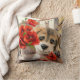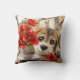Funny puppy and poppy flowers throw pillow