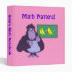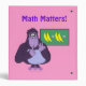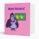 This funny custom 3-ring binder has a cartoon of a purple gorilla trying to count on its fingers. Behind the gorilla, there is a chalkboard with a math equation of 2 + 2 bananas.