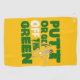 Loud yellow “PUTT OR GET OFF THE GREEN” towel with a cheeky skeleton golfer—made for golfers who love fast play and clean trash-talk on the dance floor.