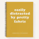 A must-have for fabric lovers and sewing enthusiasts! This fun and stylish notebook features the phrase "Easily Distracted by Pretty Fabric" in bold typography on a warm mustard background. Perfect for jotting down project ideas, fabric swatches, and creative inspirations. Personalize with your name for a unique touch! Great for quilters, seamstresses, and anyone who can't resist a beautiful textile.