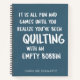 Funny quote that all quilters can relate to about quilting with an empty bobbin and not realizing it until it is too late, personalized with your name.