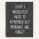 Simple lined black and white notebook for notes, to do lists, and more with a funny cover quote - Stuff I Absolutely Need to Remember But Probably Will Forget.