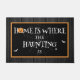 In the mood for some holiday humour? Try this spooky Halloween doormat with funny quote "Home is where the haunting is." This welcome mat is great outdoor porch / patio decoration for the spooky season. Unisex design for men and for women.