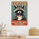 Funny Raccoon Coffee Art Poster