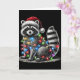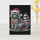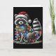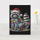 Funny Raccoon Santa Hat Christmas Tree Lights Paja Card