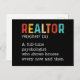 Funny Real Estate Agent Realtor Job description Postcard featuring the definition of a realtor and his or her job. Makes an amazing gift idea on Christmas or Birthday for every proud realtor, real estate broker, housing seller and real estate agent.