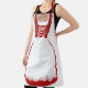 Fun apron done with graphics of a German red and white dirndl dress, the traditional dress for Austria, Switzerland and Germany. Great for a hostess at an Oktoberfest party.